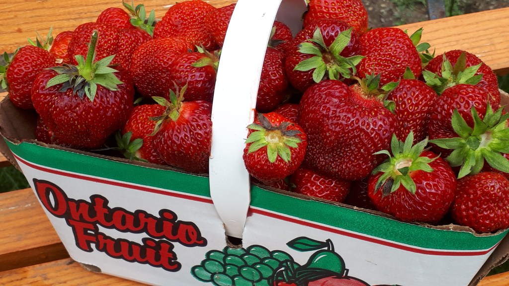 Berry season is upon us, and they are growing like gangbusters this year! It’s good to know when the picking time is, if you go to the http://www.foodlandontario.ca site there is a rough schedule of when fruit is ready. You will also need to check out any websites for local farms picking times. One of the first fruit that is ready is haskaps (or huckleberries), a taste between a blueberry and raspberry. Next is strawberries, raspberries, currants, gooseberries and blueberries. Don’t forget the plums, cherries, peaches and whatever else is out there, so many to name!